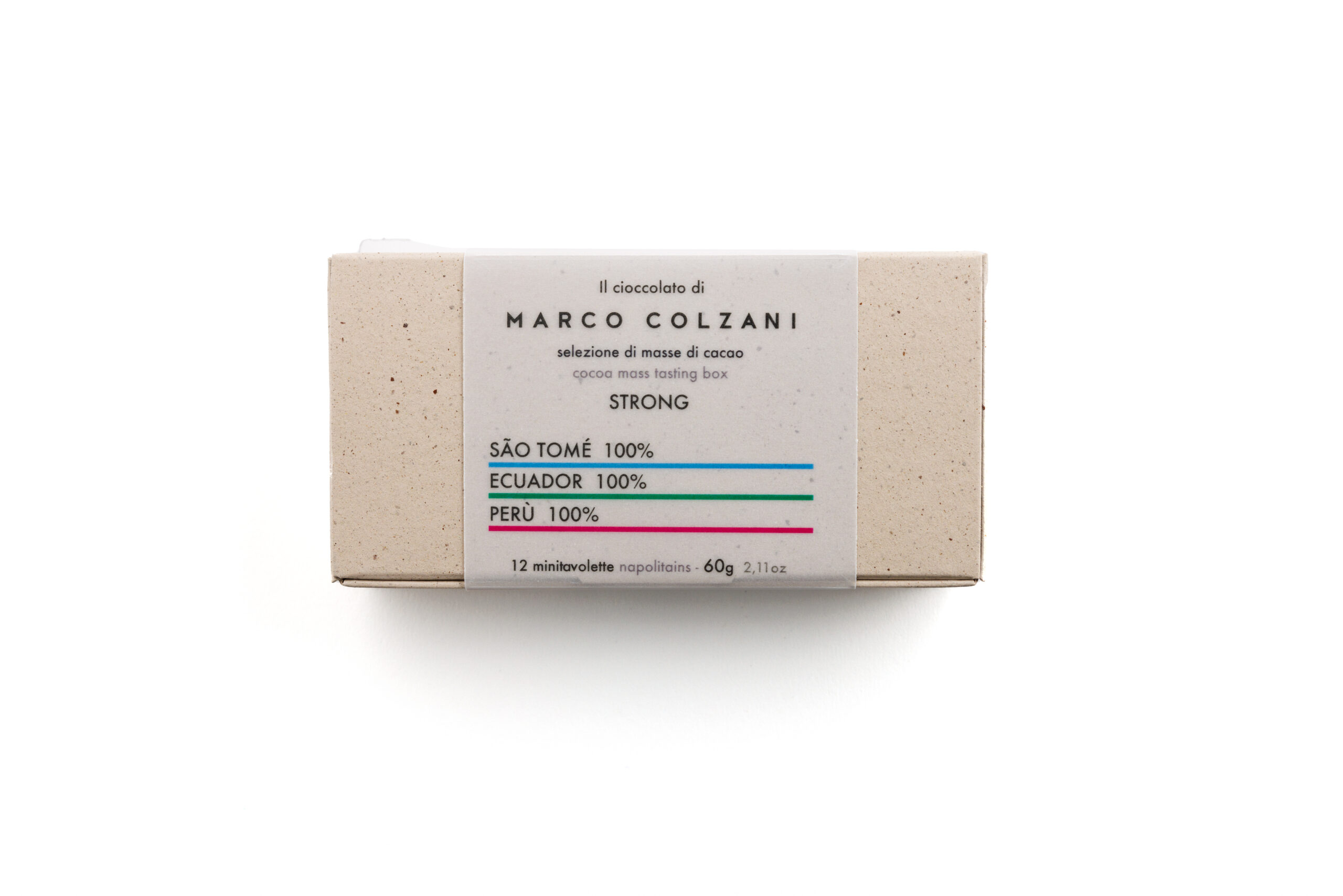 12 Napolitains da 5g. Origini: Sao Tome 100% – Ecuador 100% – Perù 100%.